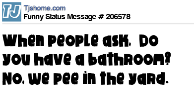 - # 82963 I hate it when people are at your house and ask, “Hey do you have a bathroom?” Nooooo not at all, we all dump in the yard.