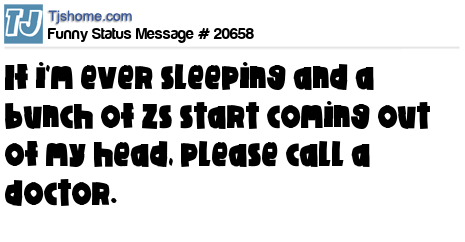 X If i'm ever sleeping and a bunch of Zs start coming out of my head, please call a doctor.