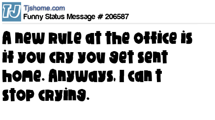 X says A new rule at the office is if you cry you get sent home. Anyways, I can’t stop crying.