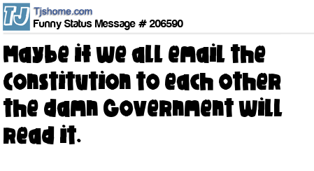 - # 138419 I think I'm going to post the Constitution in my Facebook status. That way the government might read it.