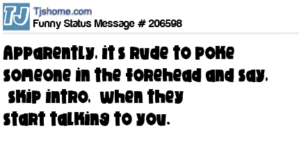 - # 209333 Apparently, it's rude to poke someone in the forehead and say, "Skip intro" when they start talking to you.