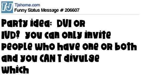 X says party idea: “DUI or IUD?” you can only invite people who have one or both and you CAN’T divulge which