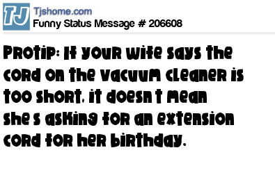 X says Protip: If your wife says the cord on the vacuum cleaner is too short, it doesn’t mean she’s asking for an extension cord for her birthday.