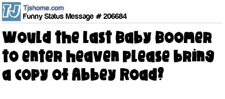 X says Would the last Baby Boomer to enter heaven please bring a copy of Abbey Road?