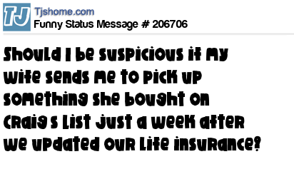 X says Should I be suspicious if my wife sends me to pick up something she bought on Craig’s List just a week after we updated our life insurance?