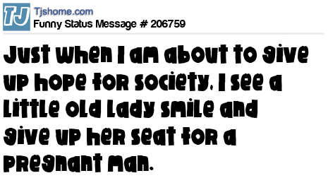 X says Just when I am about to give up hope for society, I see a little old lady smile and give up her seat for a pregnant man.