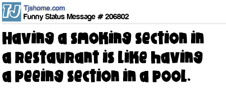 - # 9103 "having a smoking section in a restaurant should b like having a peeing section in a swimming pool......." right??