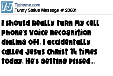X I should really turn my cell phone's voice recognition dialing off. I accidentally called Jesus Christ 24 times today. He's getting pissed...