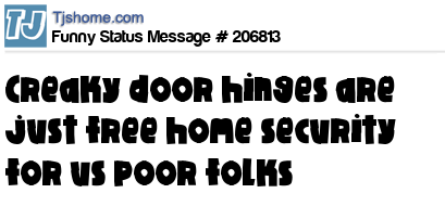 - # 200536 I can’t afford a security system so I’ve just stopped greasing the hinges on my doors