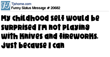 X My childhood self would be surprised I'm not playing with knives and fireworks, just because I can