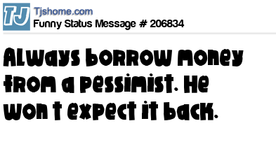 - # 173694 Always borrow money from pessimists -- they don't expect it back. ~ Steven Wright