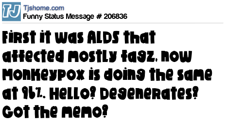 X says First it was AlDS that affected mostly fagz, now Monkeypox is doing the same at 96%. Hello? Degenerates? Got the memo?