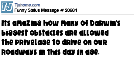 X Its amazing how many of Darwin's biggest obstacles are allowed the privelage to drive on our roadways in this day in age.