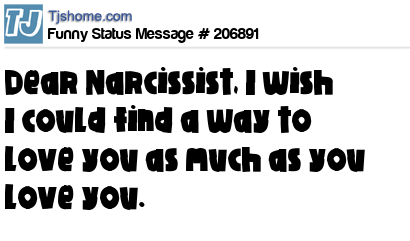 X says Dear Narcissist, I wish I could find a way to love you as much as you love you.