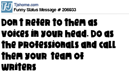 X says Don’t refer to them as voices in your head. Do as the professionals and call them your ‘team of writers’