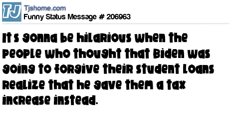 X says It’s gonna be hilarious when the people who thought that Biden was going to forgive their student loans realize that he gave them a tax increase instead.