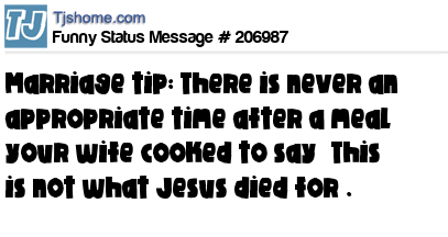 X says Marriage tip: There is never an appropriate time after a meal your wife cooked to say “This is not what Jesus died for”.
