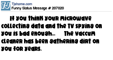 - # 210274 If you think your microwave spying on you is bad… Guess what. Your vacuum cleaner has been gathering dirt on you for years.