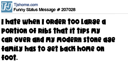 X says I hate when I order too large a portion of ribs that it tips my car over and my modern stone age family has to get back home on foot.