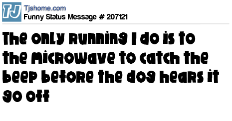 X says The only running I do is to the microwave to catch the beep before the dog hears it go off