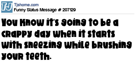 - # 172882 You know it's going to be a crappy day when it starts with sneezing while brushing your teeth