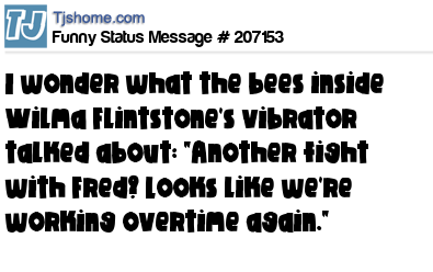 X says I wonder what the bees inside Wilma Flintstone's vibrator talked about: "Another fight with Fred? Looks like we're working overtime again."