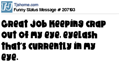 X says Great job keeping crap out of my eye, eyelash that's currently in my eye.