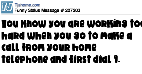 - # 183576 You know you've been working too hard when you keep dialing a 9 while making a call from your home phone.