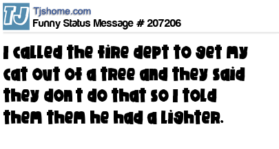 X says I called the fire dept to get my cat out of a tree and they said they don’t do that so I told them them he had a lighter.