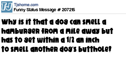 X says Why is it that a dog can smell a hamburger from a mile away but has to get within a 1/2 an inch to smell another dog's butthole?