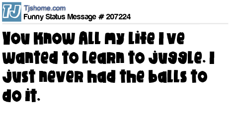 - # 203900 All my life I’ve wanted to learn to juggle. I just never had the balls to do it.