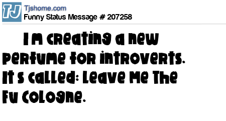 X says I’m creating a new perfume for introverts. It’s called: Leave Me The Fu Cologne.