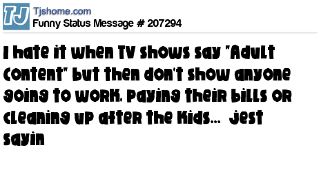- # 207283 I hate it when TV shows say "Adult Content" but then don't show anyone going to work, paying their bills or cleaning up after the kids...