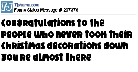 X says Congratulations to the people who never took their Christmas decorations down you’re almost there