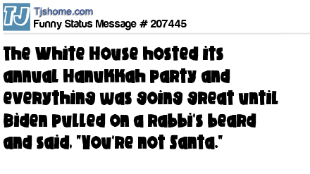 X says The White House hosted its annual Hanukkah party and everything was going great until Biden pulled on a rabbi's beard and said, "You're not Santa."