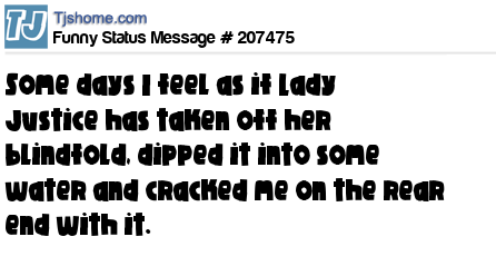 X says Some days I feel as if Lady Justice has taken off her blindfold, dipped it into some water and cracked me on the rear end with it.