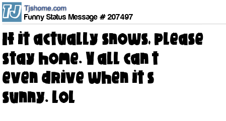 - # 209326 If it snows, please stay home. Y’all can’t even drive when it’s sunny.