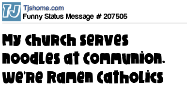 X says My church serves noodles at Communion. we're Ramen Catholics