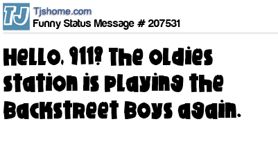 X says Hello, 911? The oldies station is playing the Backstreet Boys again.