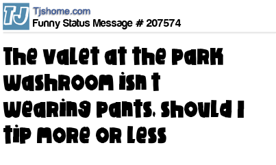 X says The valet at the park washroom isn’t wearing pants, should I tip more or less
