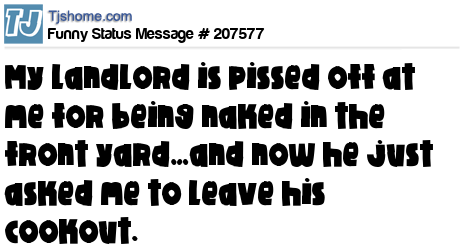 X says My landlord is pissed off at me for being naked in the front yard…and now he just asked me to leave his cookout.