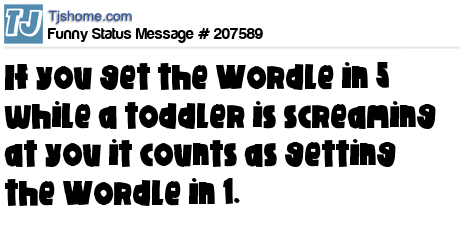 X says If you get the Wordle in 5 while a toddler is screaming at you it counts as getting the Wordle in 1.