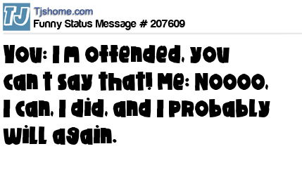 X says You: I’m offended, you can’t say that! Me: Noooo, I can, I did, and I probably will again.