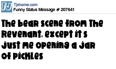 X says The bear scene from The Revenant, except it’s just me opening a jar of pickles