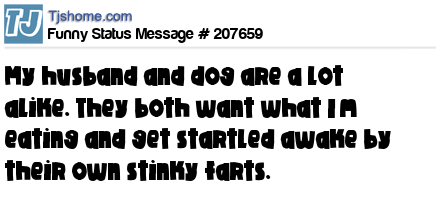 - # 204365 My husband and dog are a lot alike. They both want what I’m eating and get startled awake by their own farts.