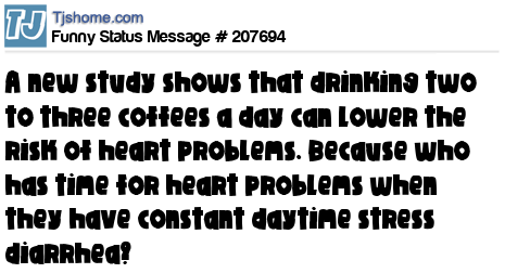X says A new study shows that drinking two to three coffees a day can lower the risk of heart problems. Because who has time for heart problems when they have constant daytime stress diarrhea?