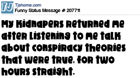 X says My kidnapers returned me after listening to me talk about conspiracy theories that were true, for two hours straight.