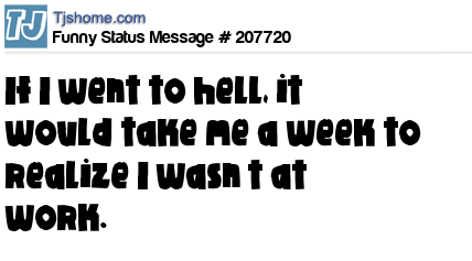 - # 27991 If I were to go to hell, it would take at least a week to realize I wasn't at work.
