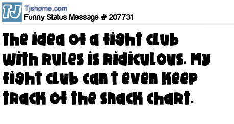 X says The idea of a fight club with rules is ridiculous. My fight club can’t even keep track of the snack chart.