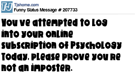 X says You’ve attempted to log into your online subscription of Psychology Today, please prove you’re not an imposter.